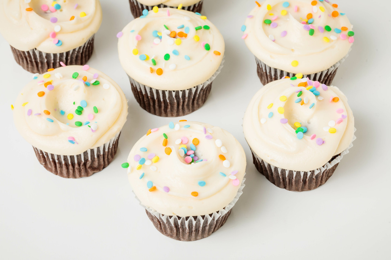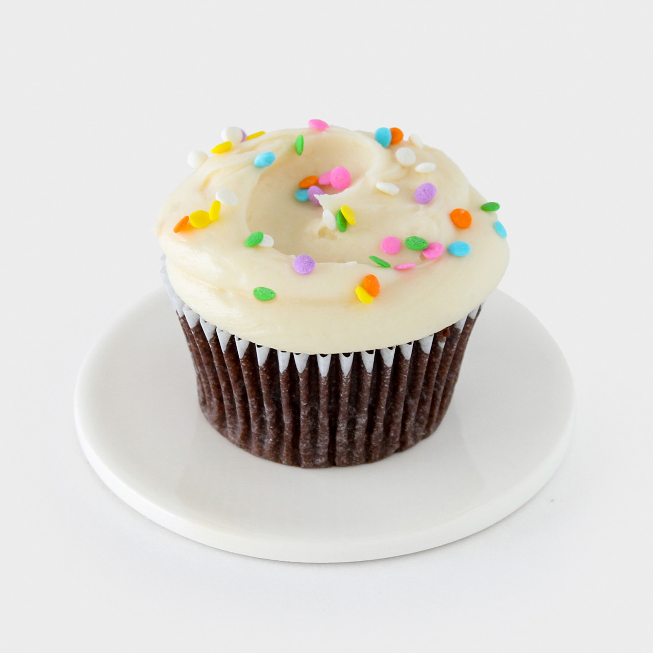 Chocolate cupcake frosted with velvety vanilla buttercream — $4.99 each (sold online in boxes of 4, 8, or 12—mix & match flavors!)