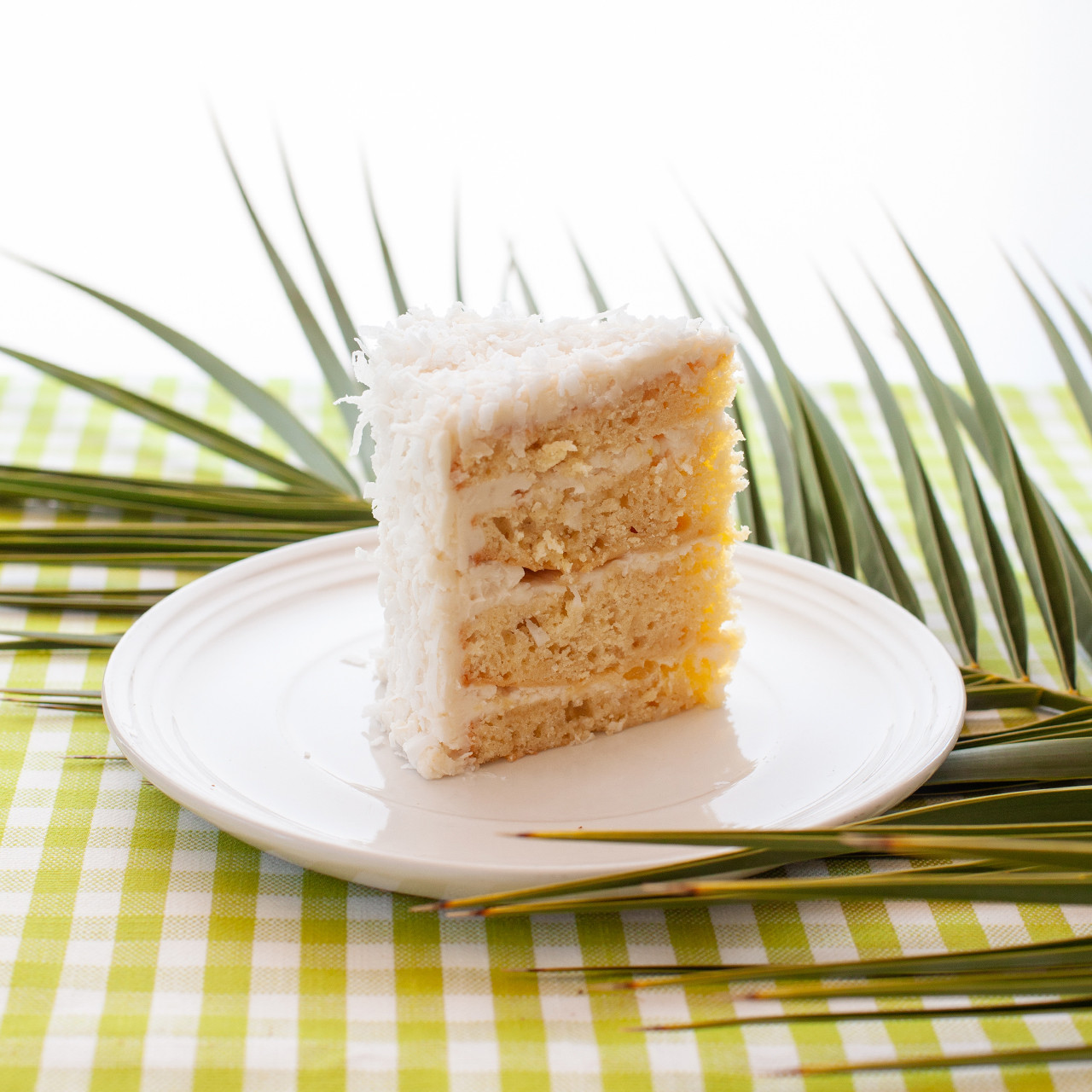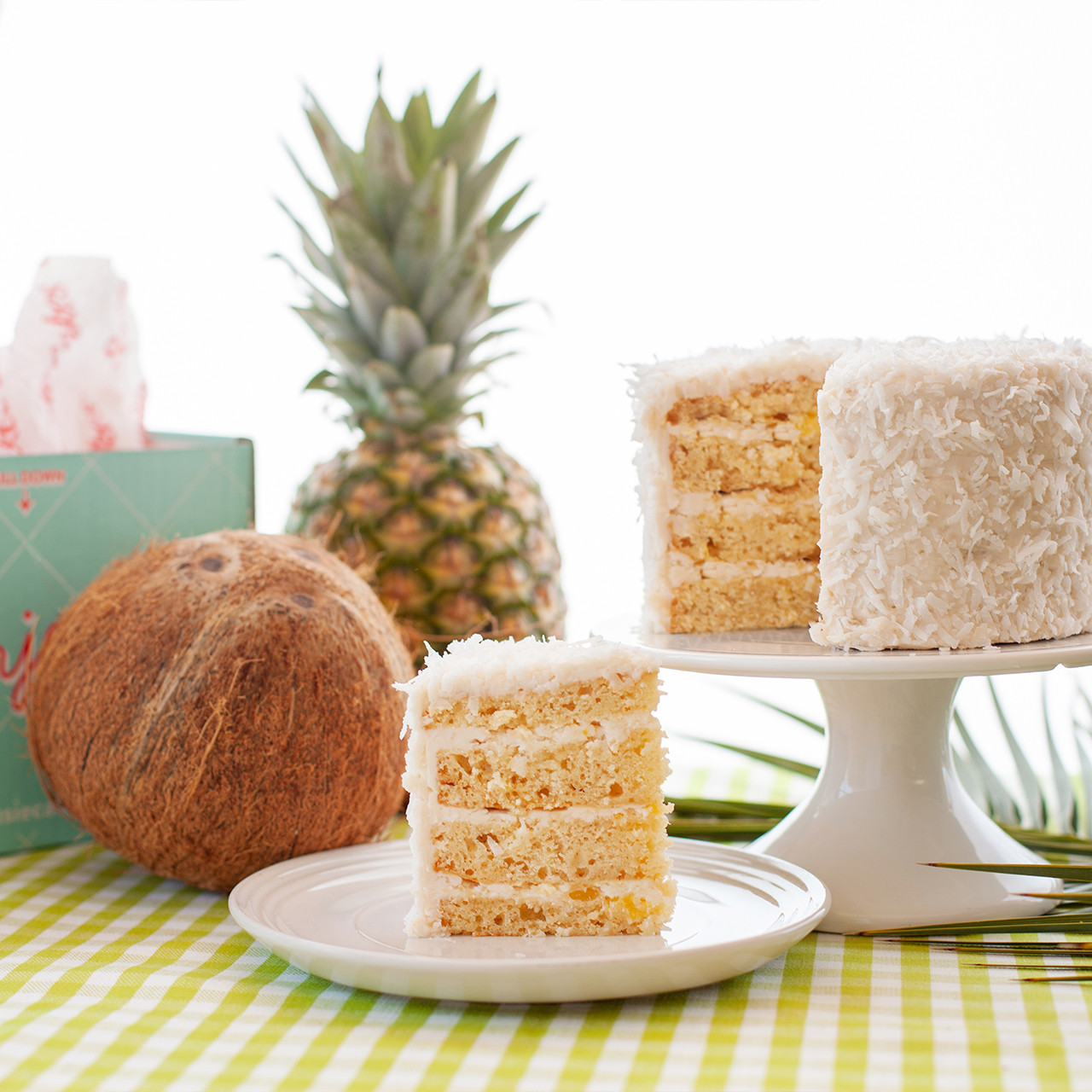 Vanilla cake layered with pineapple accented coconut filling & topped with fluffy coconut buttercream & shredded coconut. This cake is a 6-inch cake. Serves 6-12 people. Also comes with a complimentary candle and matchbox!