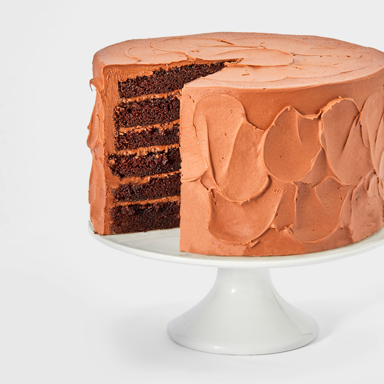 “Just like you remember!” Towering high, moist chocolate cake filled and covered in rich, dark chocolate buttercream frosting. Available in 6" or 9" sizes.