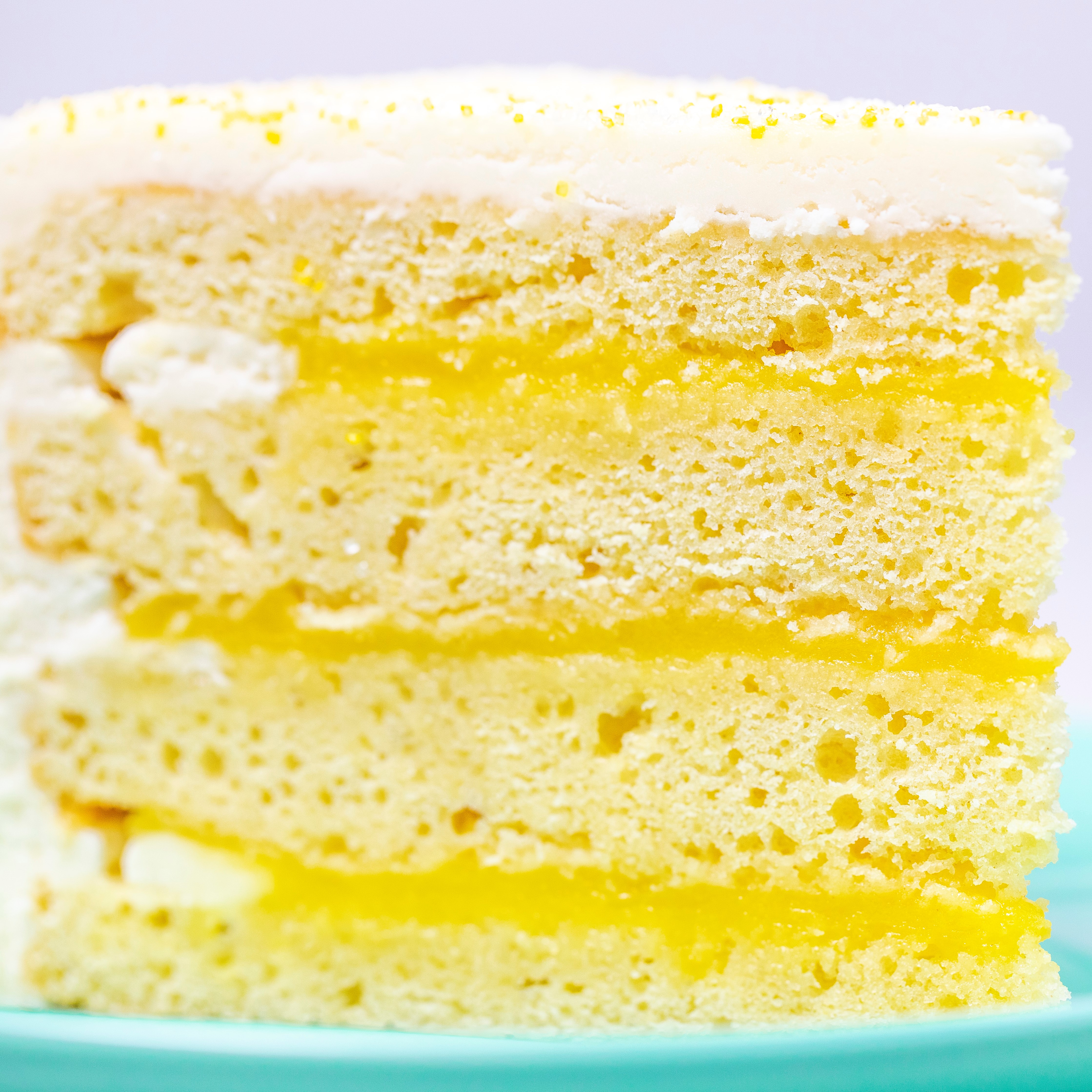 Four layers of vanilla cake filled with fresh lemon curd, frosted with vanilla buttercream. Available in 6" or 9" sizes.