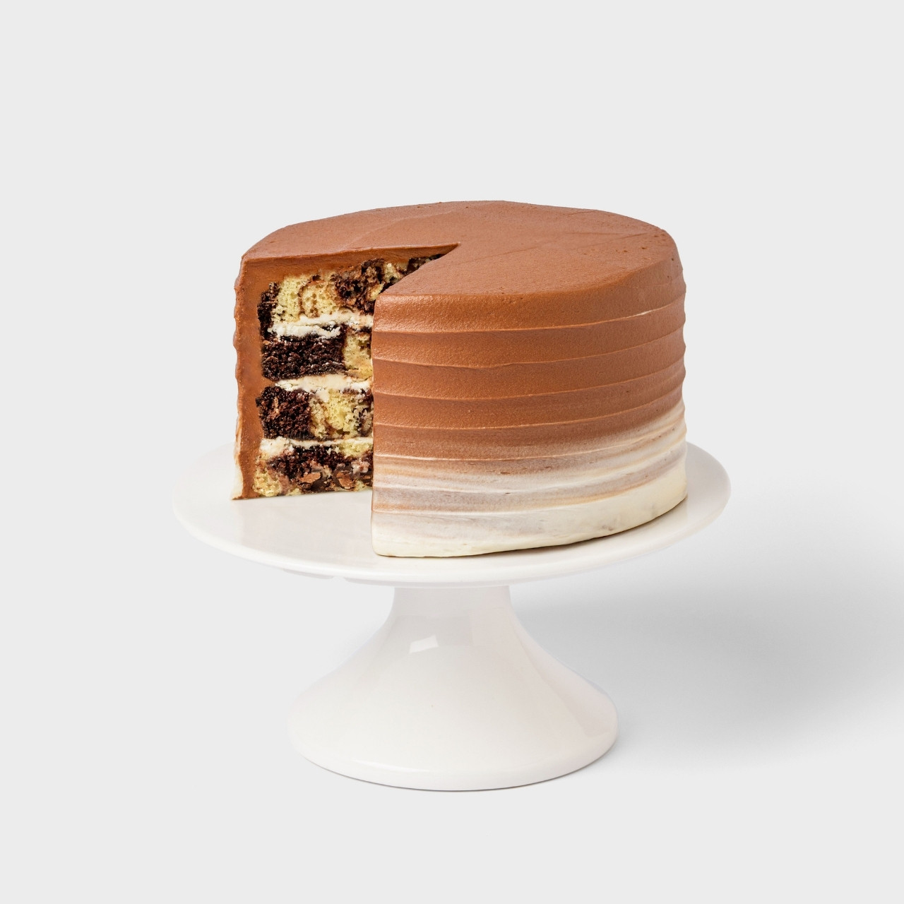 6-inch vanilla and chocolate cake marbled together with chocolate chips. Filled with vanilla buttercream and topped with chocolate buttercream on the outside. Serves 6-12 people. Also comes with a complimentary candle and matchbox!