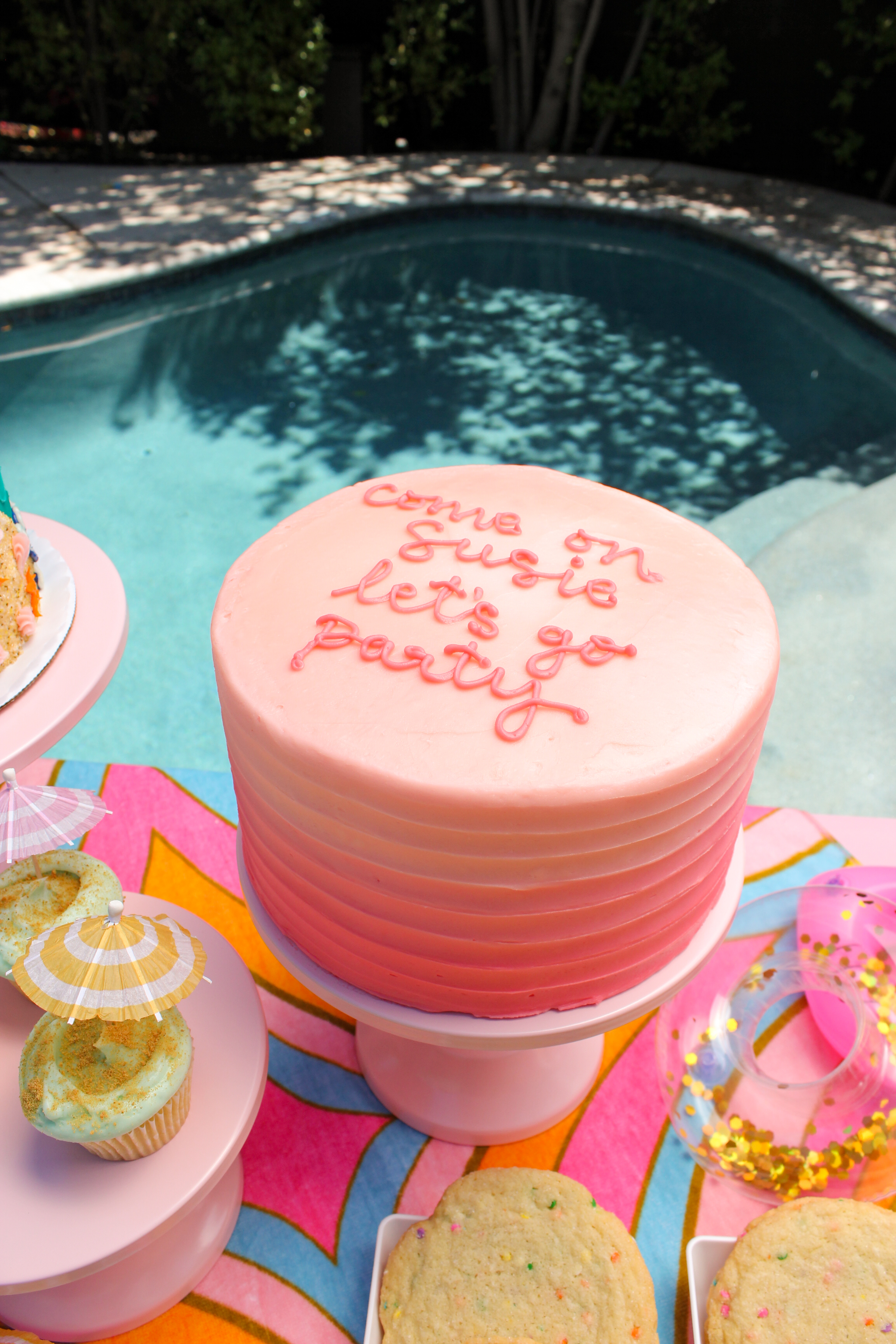Every Barbie party needs a Barbie cake! Order from any of SusieCakes' local bakeries in CA and TX. We even do custom designs like this Malibu Barbie. Fun Fact: SusieCakes made Margot Robbie's Barbie birthday cake while she was filming the Barbie movie!