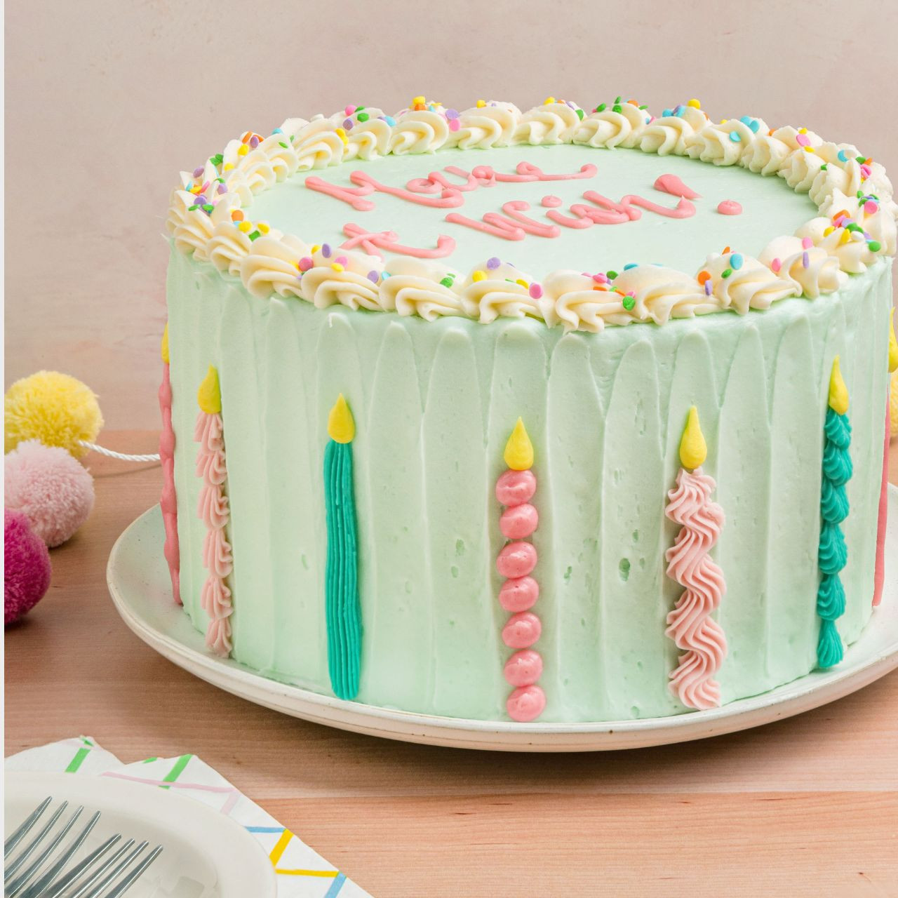 Celebrate in style with our Candles Cake! Featuring colorful, hand-piped candles dancing along the sides, this festive design brings birthday magic to life — no matches required. Perfect for parties, wishes, and sweet memories.